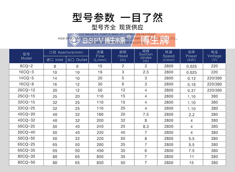 上海博生水泵制造有限公司生產的不銹鋼磁力泵 20CQ-12P耐堿不銹鋼 防腐蝕磁力泵 上海磁力泵廠家CQ型磁力驅動泵(簡稱磁力泵),CQG型耐高溫磁力驅動泵(耐溫≤250℃)(簡稱磁力泵)是將永磁聯軸器的工作原理應用于離心泵的新產品,主要材料有不銹鋼、增強聚丙稀,工程塑料。設計合理,具有全密封、無泄漏、耐腐蝕的特點。