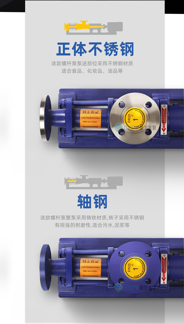 環境保護:工業污水、生活污水、含有固體顆粒及短纖維的污泥濁水的輸送,特別使用于油水分離器,板框壓濾機設備等。