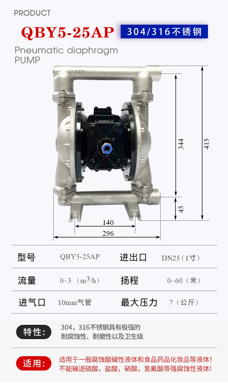 QBY5-25AP不銹鋼隔膜泵