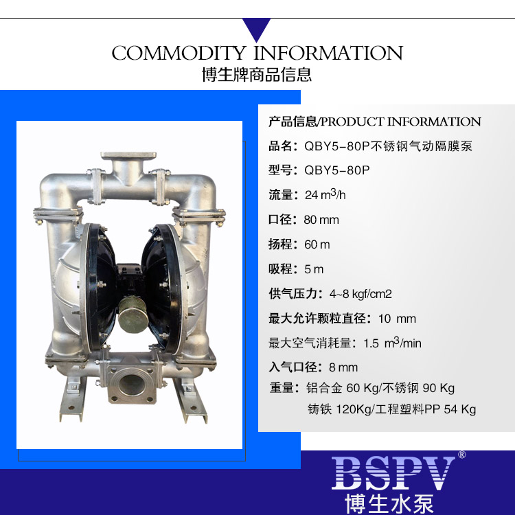 QBY5-80P型不銹鋼氣動隔膜泵